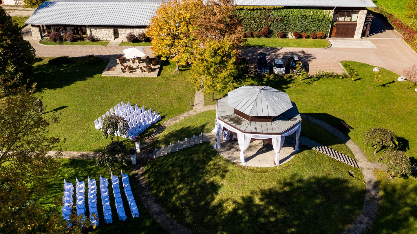 Sala bankietowa z antresolą o rustykalnym charakterze, do której jest wejście bezpośrednio z parku. Na zewnątrz jest także duży taras do wykorzystania, który łączy się z salą.